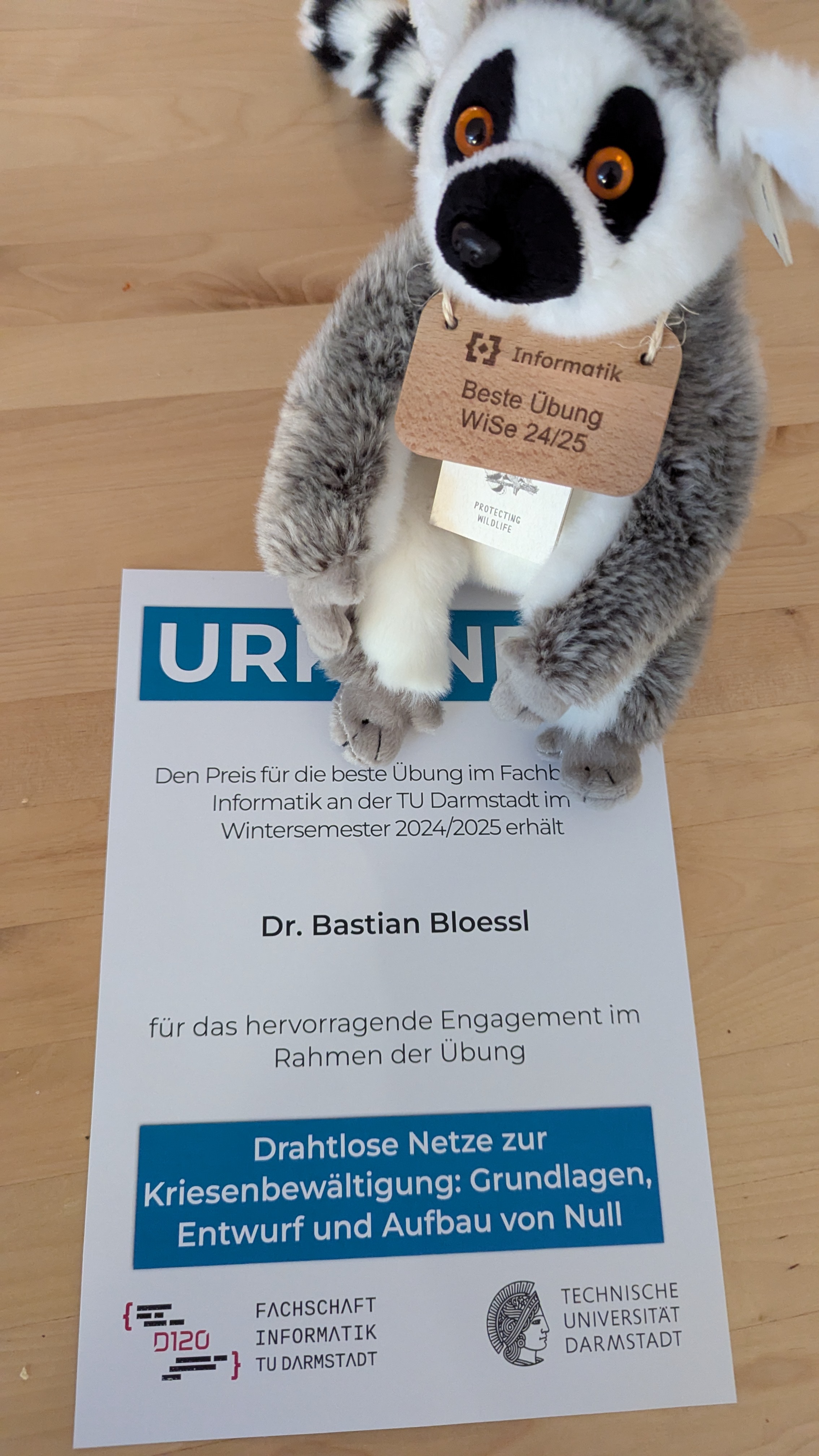 I am happy to receive the award for the best exercise in the winter term 2024/25 from the computer science student council for my lecture on crisis communication.