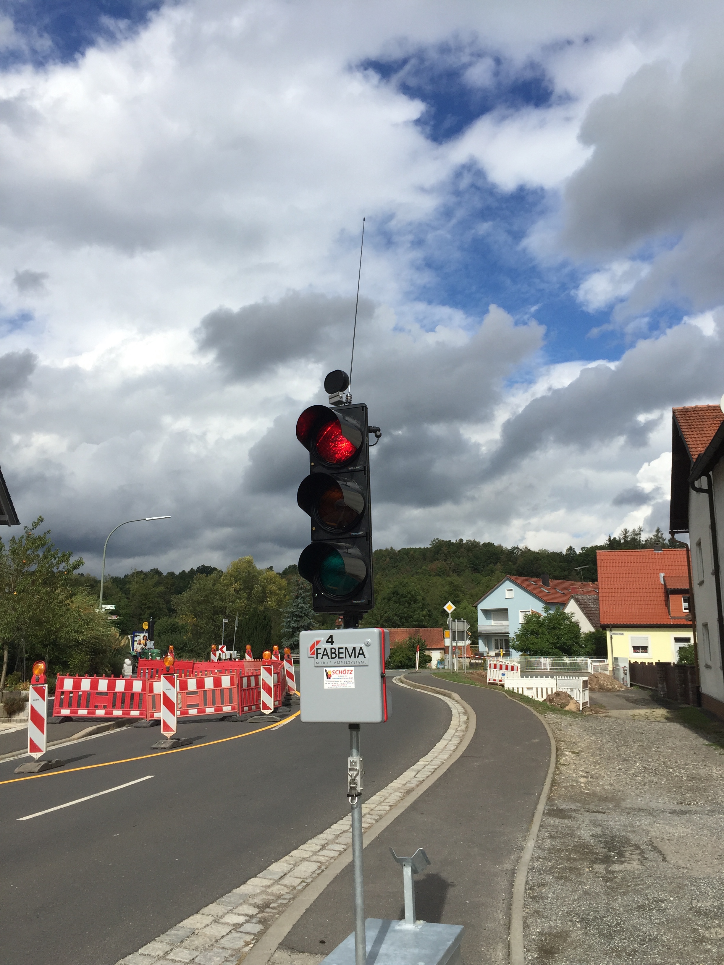 Yesterday, they started digging up the street in front of my girlfriends house to put some fibre cables for faster internet—very cool. But it became even better: at the construction site, they placed two pairs of mobile traffic lights, which I could receive perfectly fine without leaving home.