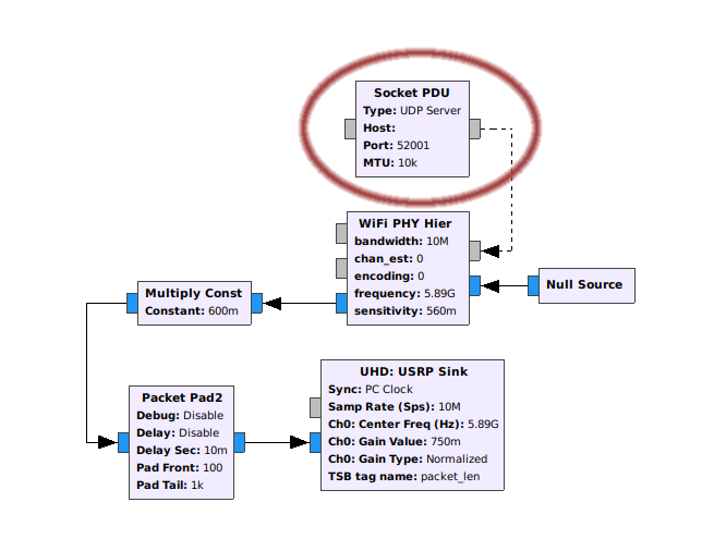 To use Scapy, I extended the transmit flow graph with a Socket PDU block that is attached directly to the PHY.