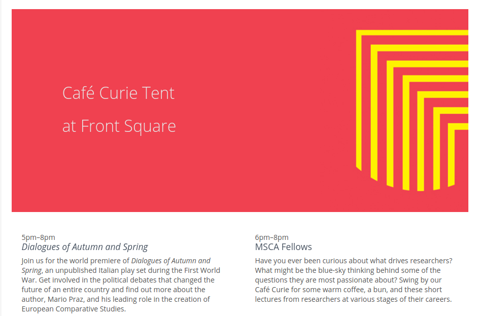 I will be around at Café Curie where Marie Curie Fellows have the chance to chat about their work and give short talks.