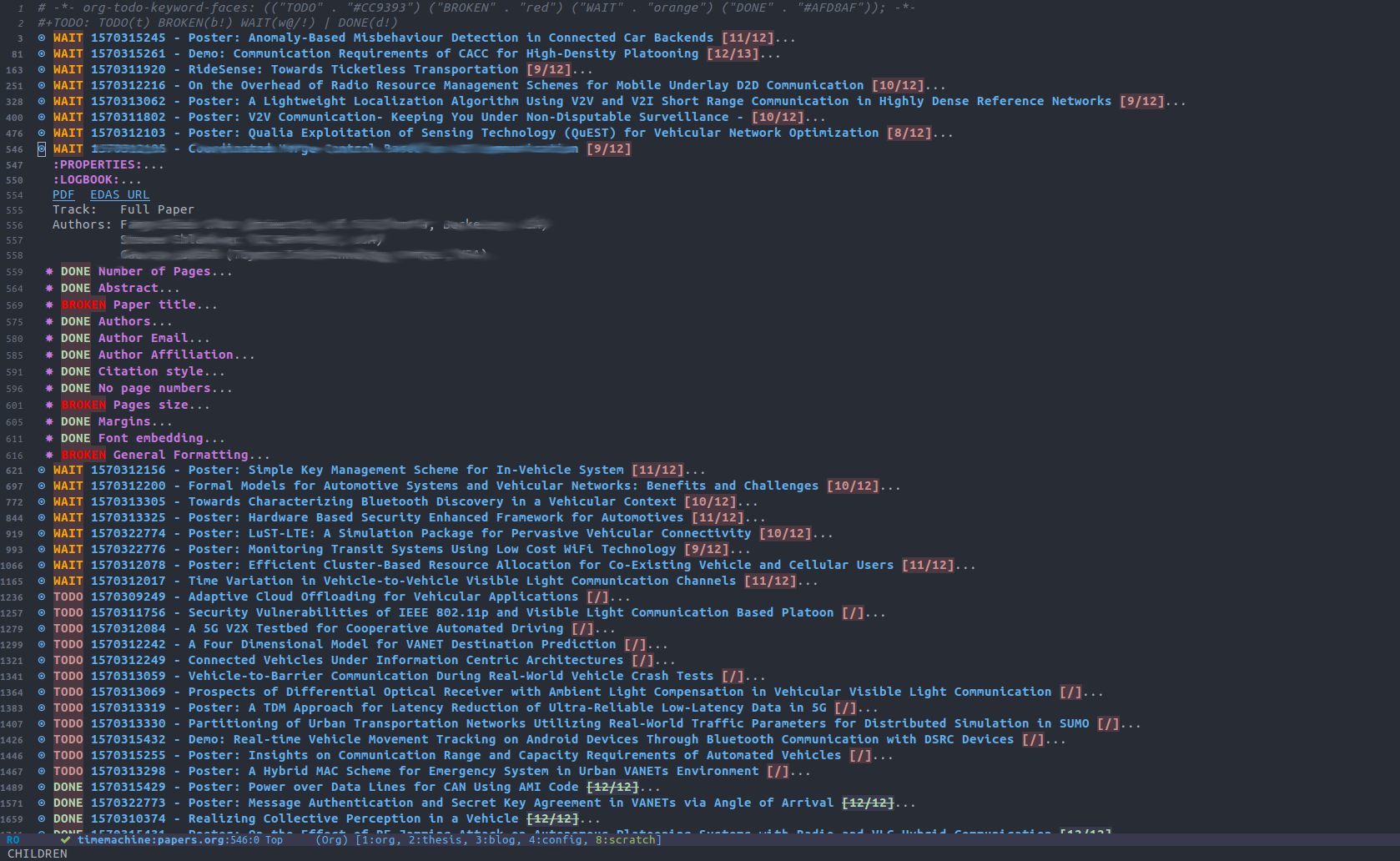 Fortunately, I know Michele Segata, last year’s Publication Chair of VNC. He gave me a set of scripts that proved to be really helpful. Since I recently switched to using Emacs, I adapted them to integrate with Org Mode.